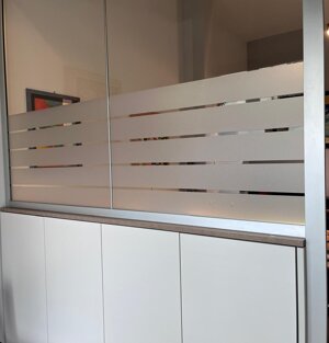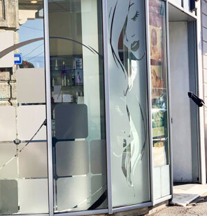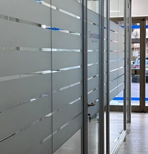 - progettazione, realizzazione, stampa e posa vetrofanie satinate