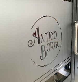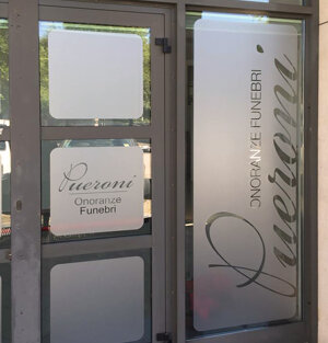- Realizzazione vetrofania satinata colorata