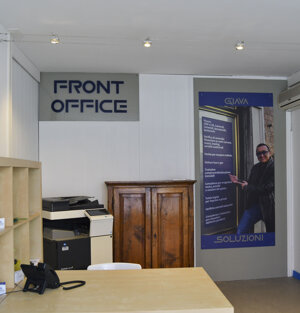 - Progettazione, realizzazione, stampa e posa vetrofanie nuova sede
