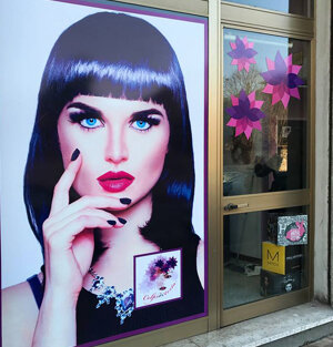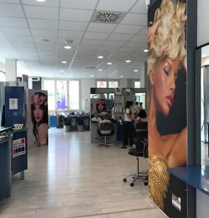 - Progettazione e realizzazione restyling totale dell'immagine interna ed esterna del salone (pannellature e vetrofanie layout interno e vetrofanie esterne)